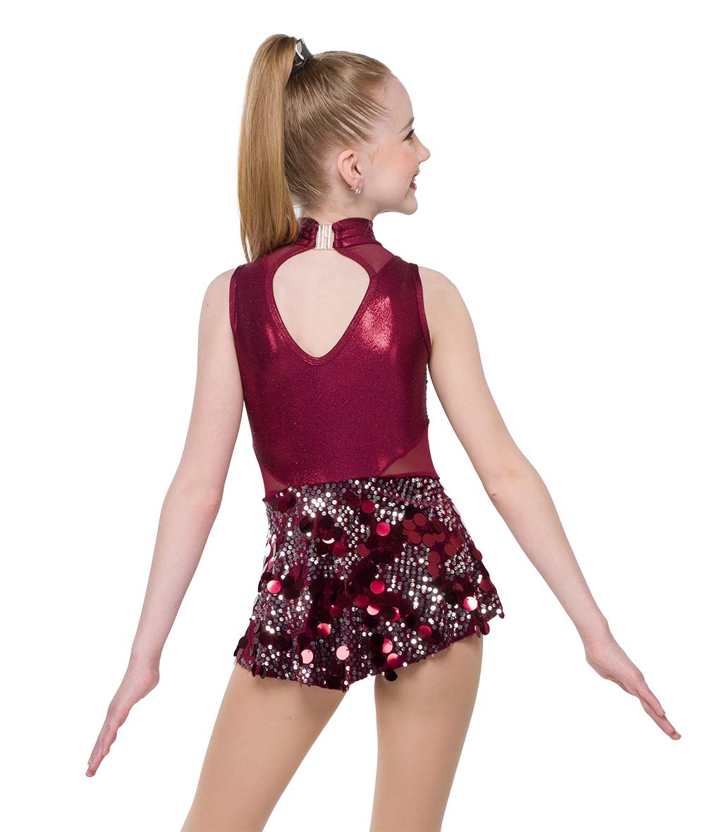 Mixed sequin velvet, mesh and foil lycra leotard with backskirt. Partially lined. Imported.