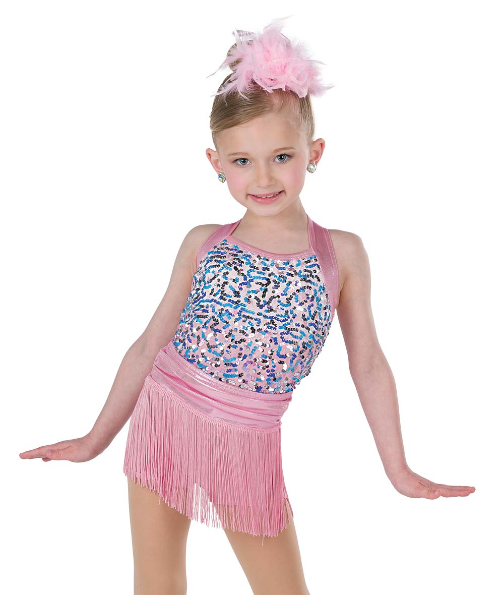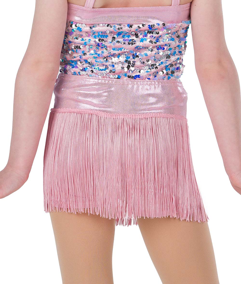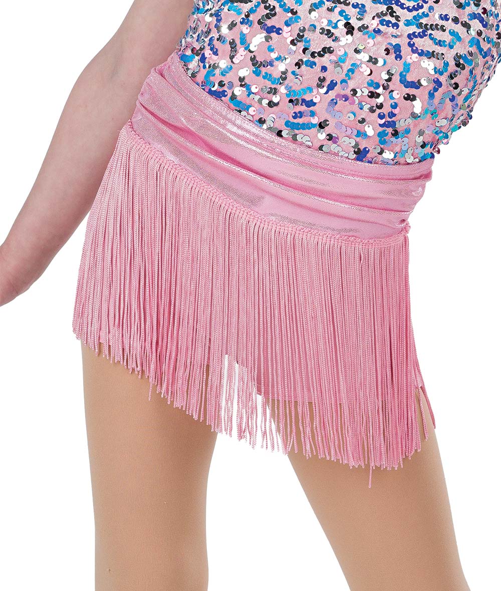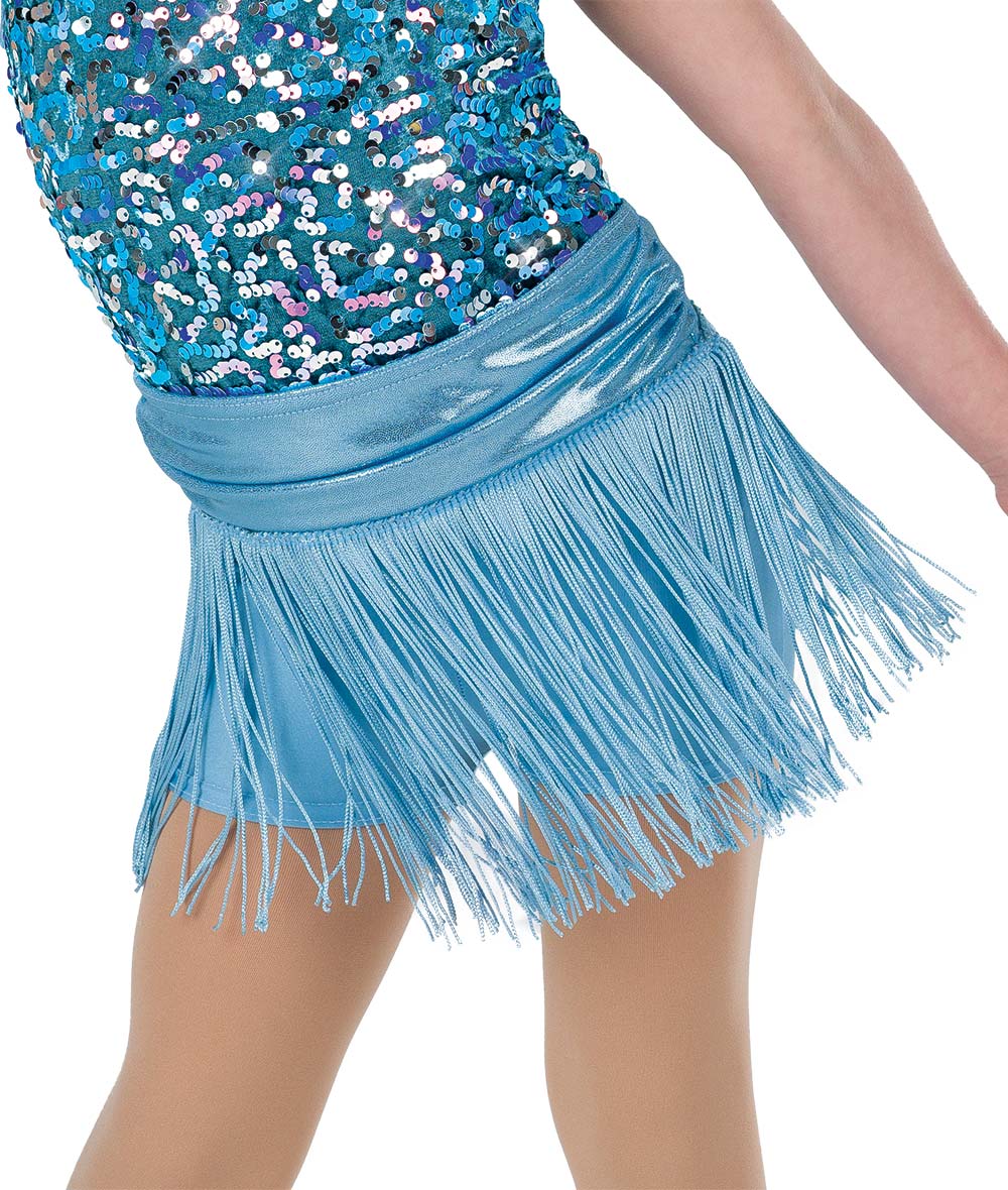 Fringe skirt on foil lycra waistband. Made in the USA.