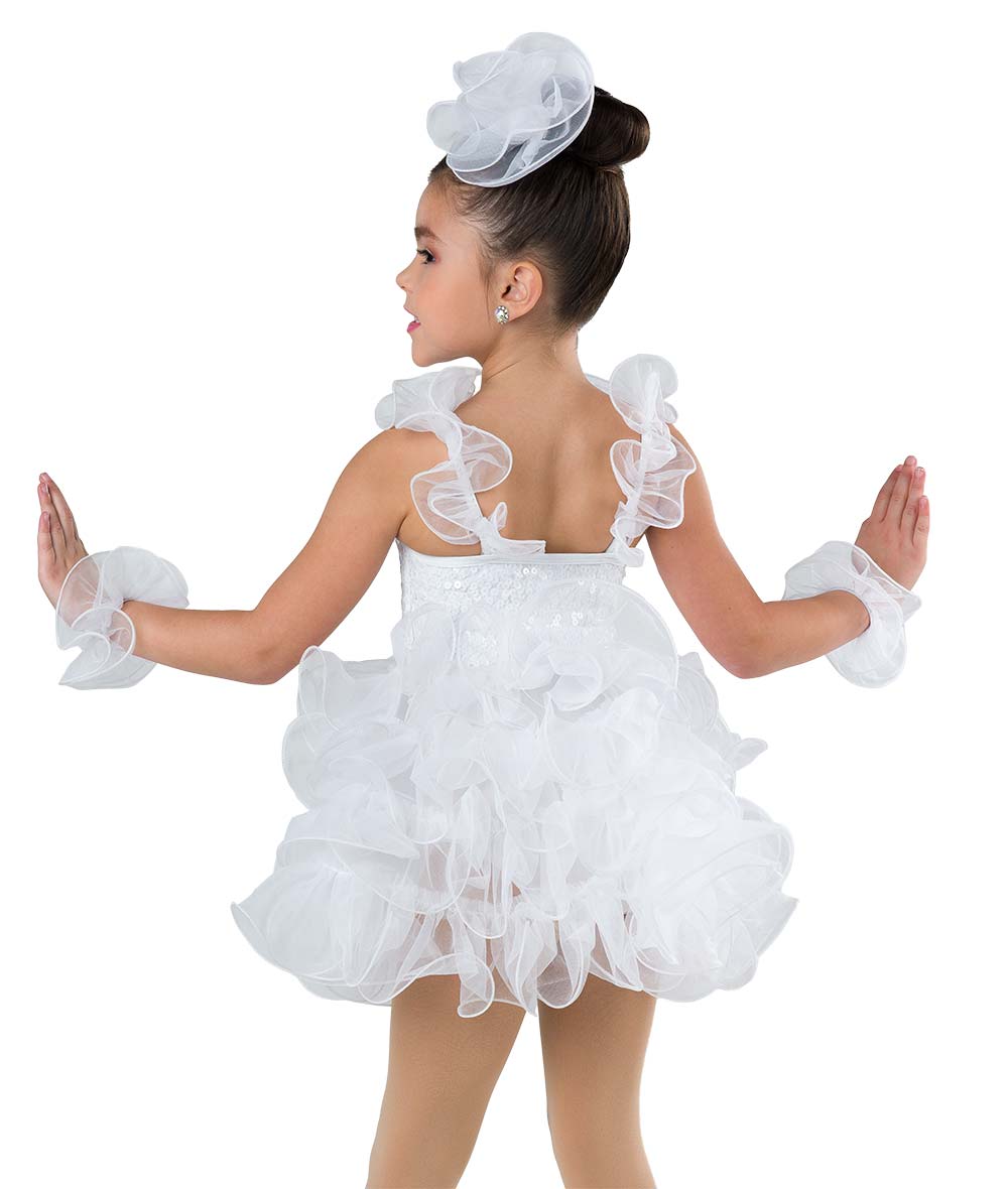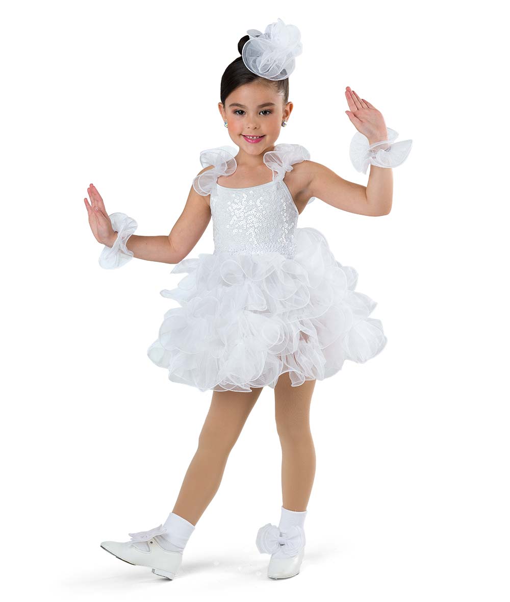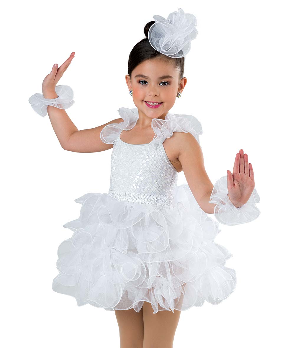 Lined mixed sequin mesh and spandex leotard with attached organza straps and tutu with monofilament curly hem. Imported.