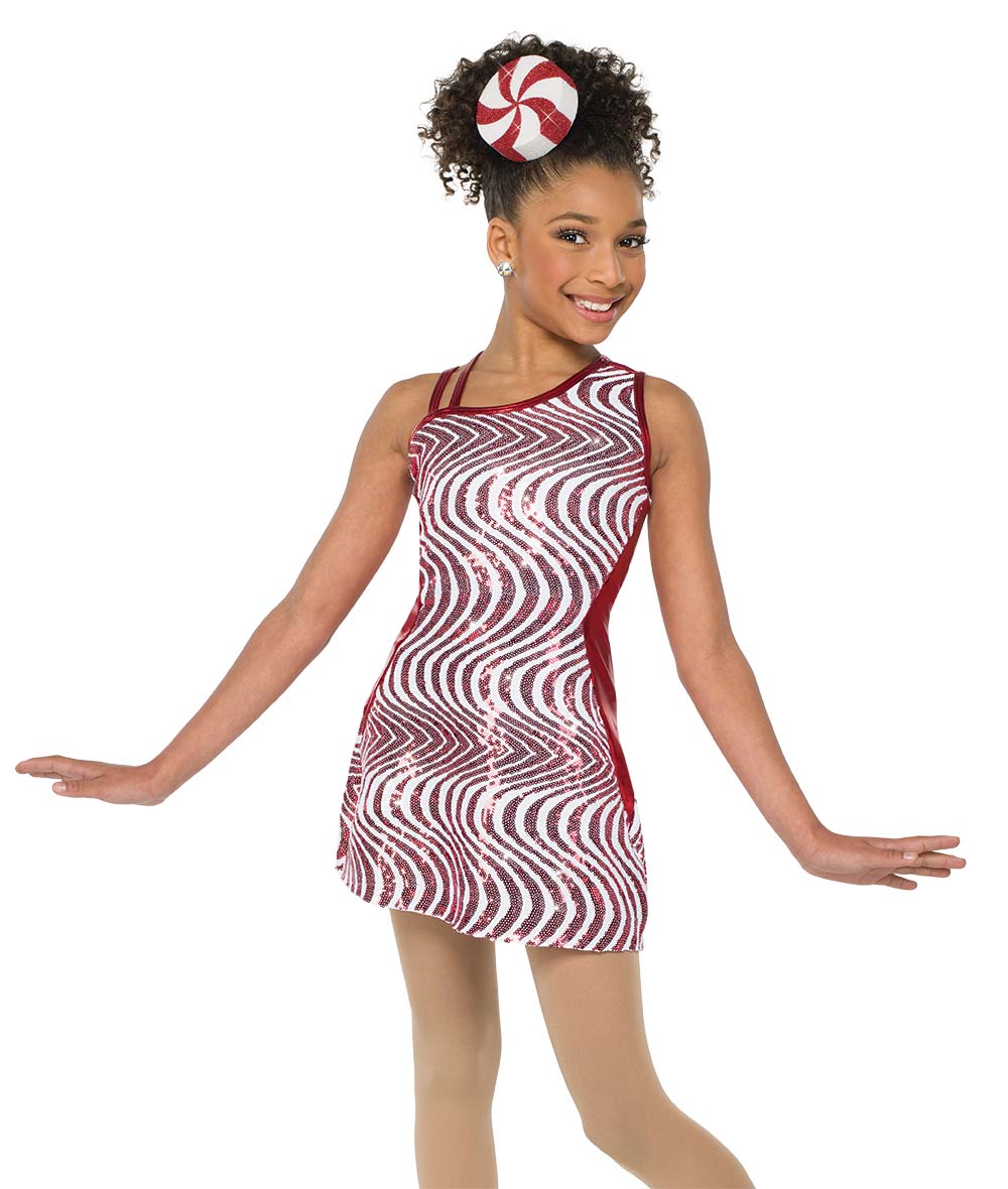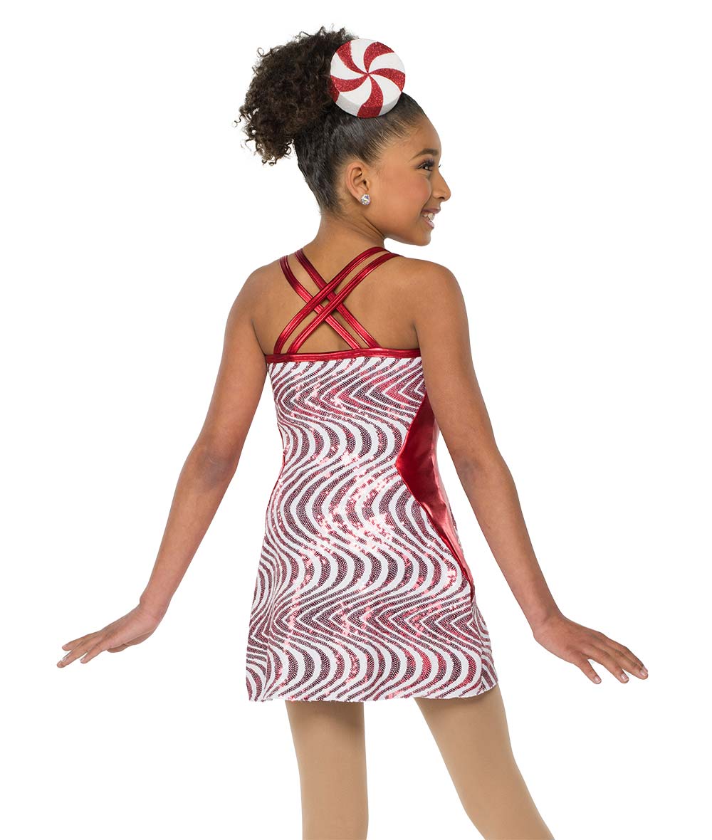 Lined wavy sequin spandex and flat foil lycra dress over attached spandex shortall. Made in the USA.